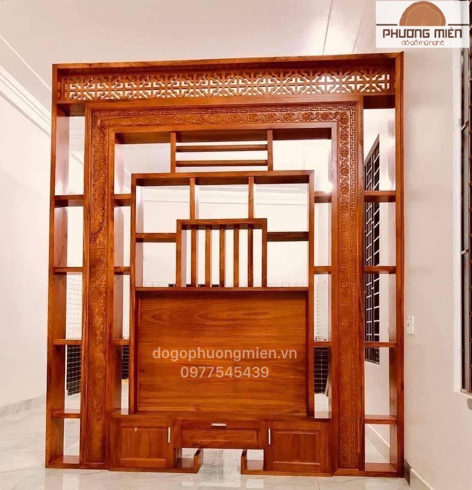 Vách ngăn bầy đồ đặt tivi gỗ gõ đỏ đẹp chuẩn.