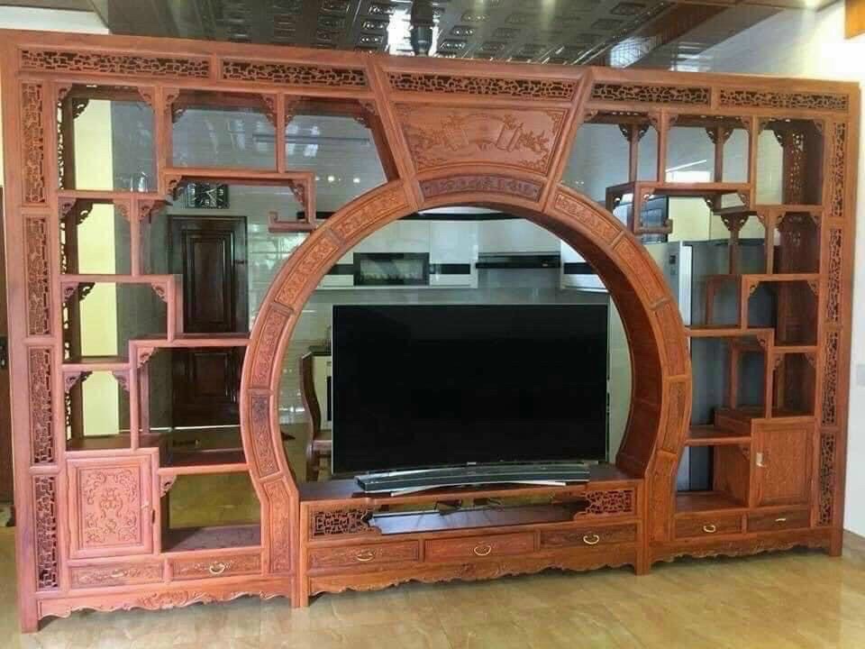 99+ Mẫu vách ngăn phòng tủ cổng bầy đồ tivi gỗ gõ đỏ hương gụ.
