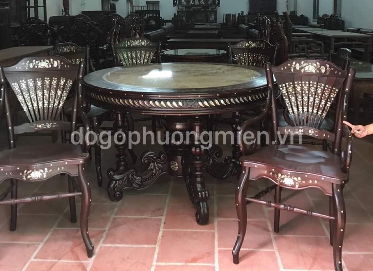 Mẫu bàn ghế rẻ quạt bàn tròn gỗ gụ được cẩn ốc đẹp.