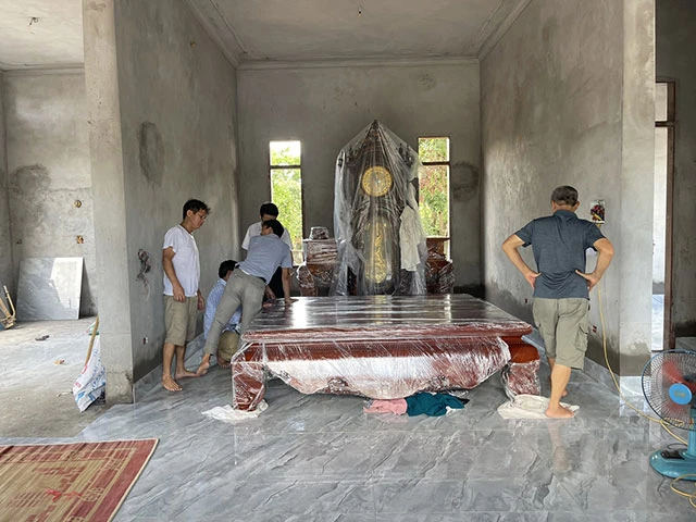 Bàn giao sập thờ và sập trơn tứ diện cho anh Sinh tại Nghĩa Hưng - Nam Định