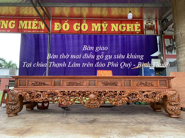Bàn thờ hoa mai gỗ gụ-Bàn giao tại chùa Thạnh Lâm-Phú Quốc-Bình Thuận.