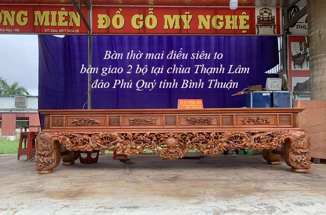 Rất vinh dự cho cơ sở đồ gỗ Phương Miên được cơ hội góp phần công sức nhỏ tại chùa Thạnh Lâm trên đảo Phú Quý tình Bình Thuận. Hôm nay ngày 01/12/2022 bàn giao sau hơn 3 tháng thi công cật lực. Chúng tôi đã hoàn thiện và bàn giao 2 bộ bàn thờ hoa mai điểu gỗ gụ tự nhiên tại chùa Thạnh Lâm trên đảo Phú Quý tỉnh Bình Thuận thành công tốt đẹp. Đây là hai sản phẩm có thể nói là siêu to khổng lồ được chúng tôi thi công.