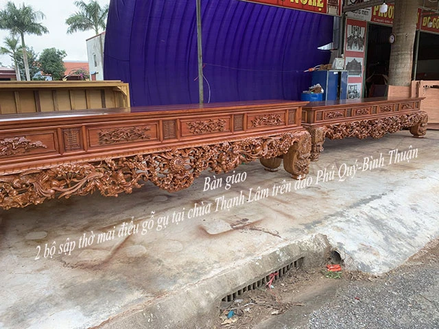 Bàn giao 2 bộ bàn thờ hoa mai gỗ gụ tại chùa Thanh Lâm - Phú Quý - Bình Thuận.