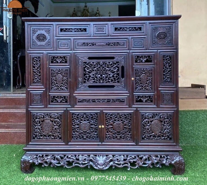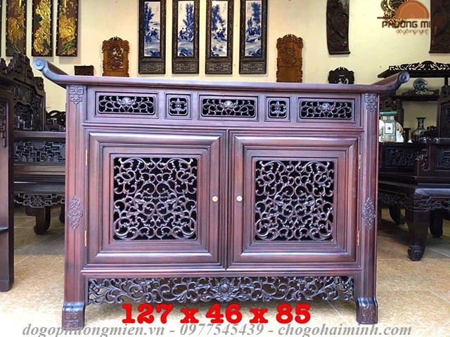 Tủ thờ kiểu Huế gỗ gụ chạm ngũ phúc. (xem thêm)