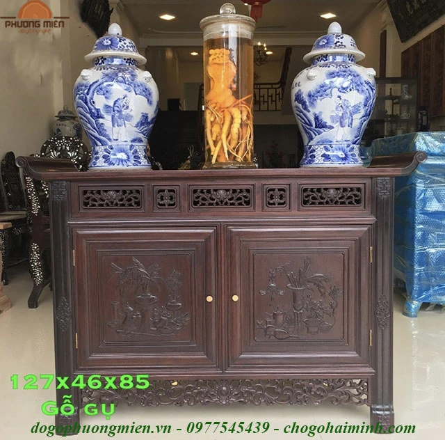 Mẫu tủ thờ chạm dắt gỗ gụ kiểu Huế: