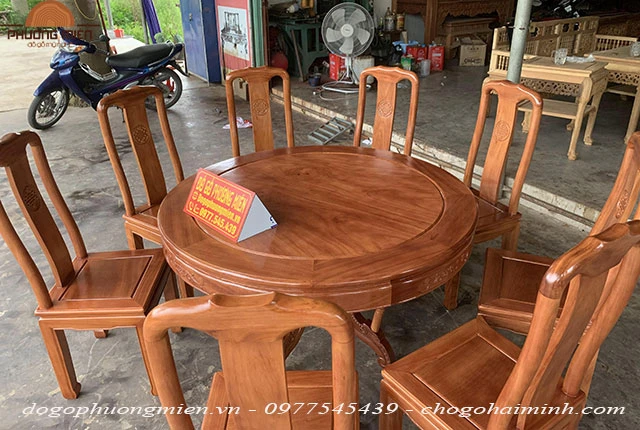 Mẫu bàn ghế ăn bàn tròn gỗ gõ đỏ đẹp.