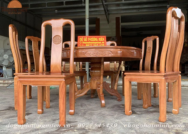 Thông tin chi tiết bộ bàn ghế ăn gỗ gõ đỏ bàn tròn hiện đại: