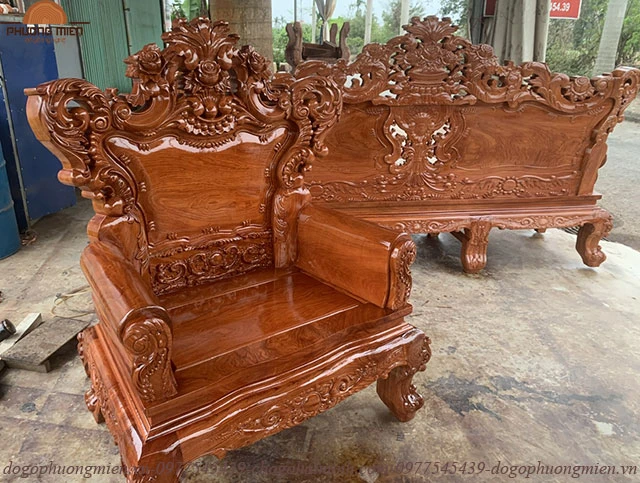 Sản phẩm được chạm khắc không quá đơn giản nhưng tạo nên sự độc lạ, mới mẻ cho bộ ghế. Song, bộ ghế vẫn toát lên diện mạo xa hoa, lịch lãm, thể hiện đẳng cấp quý tộc. Thích hợp kê và trang trí trong không gian hiện đại như ngày nay. Với bộ ghế hoàng gia đẹp, hoành tráng này sẽ có giá thành không hề nhỏ, nên số người sở hữu được nó sẽ rất ít. Đây là bộ ghế rất lợi nhuận khi càng để lâu càng lên giá.