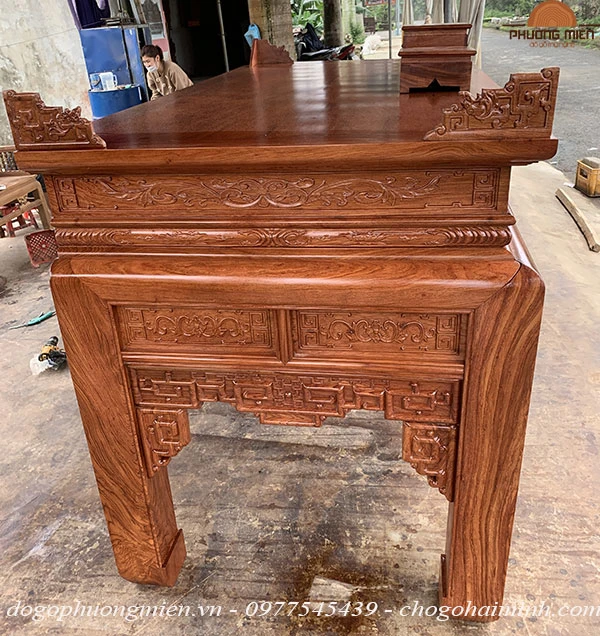 Bàn thờ ô xa gỗ hương đá làm tại cơ sở đồ gỗ Phương Miên.