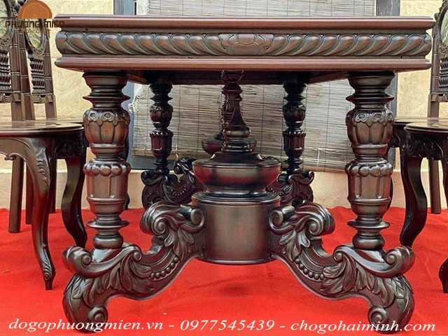 Thông tin chi tiết bộ bàn ghế ăn cù lá gỗ gụ lối cổ xưa: