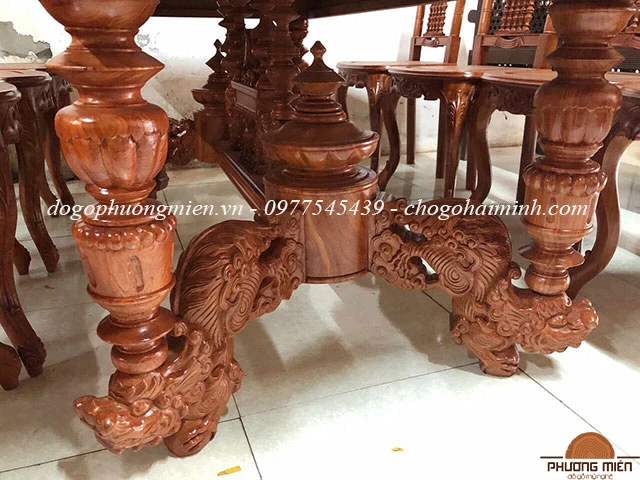 Mẫu bàn ghế ăn gỗ hương đá hiện đại đẹp kiểu cù lá.