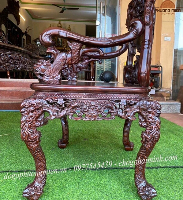 Các chi tiết hoa văn được chạm khắc hình ảnh con Phượng rất tỉ mỉ và tinh sảo. Đây là sản phẩm được các nghệ nhân khắc hoạ một cách sống động và bay bổng nhưng vẫn giữ được cái hồn của con linh thú này. Mẫu bàn ghế này càng đẹp, ý nghĩa hơn khi bạn kê và trang trí cho phòng khách, nơi mà tất cả mọi người đều có thể chiêm ngưỡng. Đây chính là động lực và niềm tự hào khi chúng tôi sản xuất ra bộ ghế đẹp này.