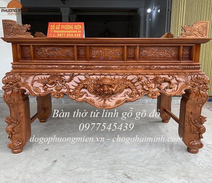 Mẫu bàn thờ tứ linh gỗ gõ đỏ đẹp.