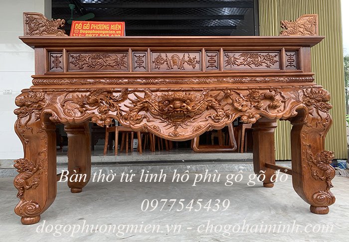 Bàn thờ tứ linh hổ phù gỗ gõ đỏ đẹp chất lượng.