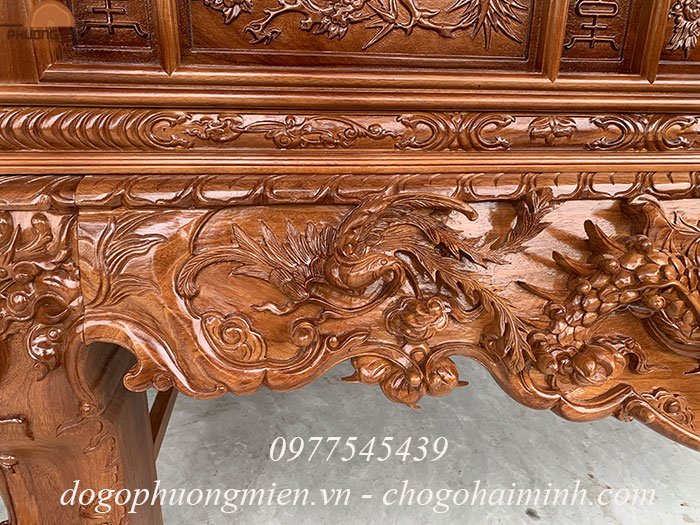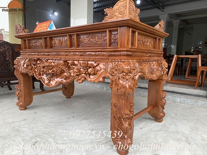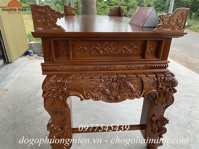Mẫu Bàn thờ tứ linh gỗ gõ đỏ chân 20 đẹp