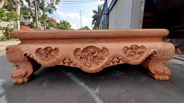Sập ba bông gỗ hương đá khi còn mộc tại xưởng.