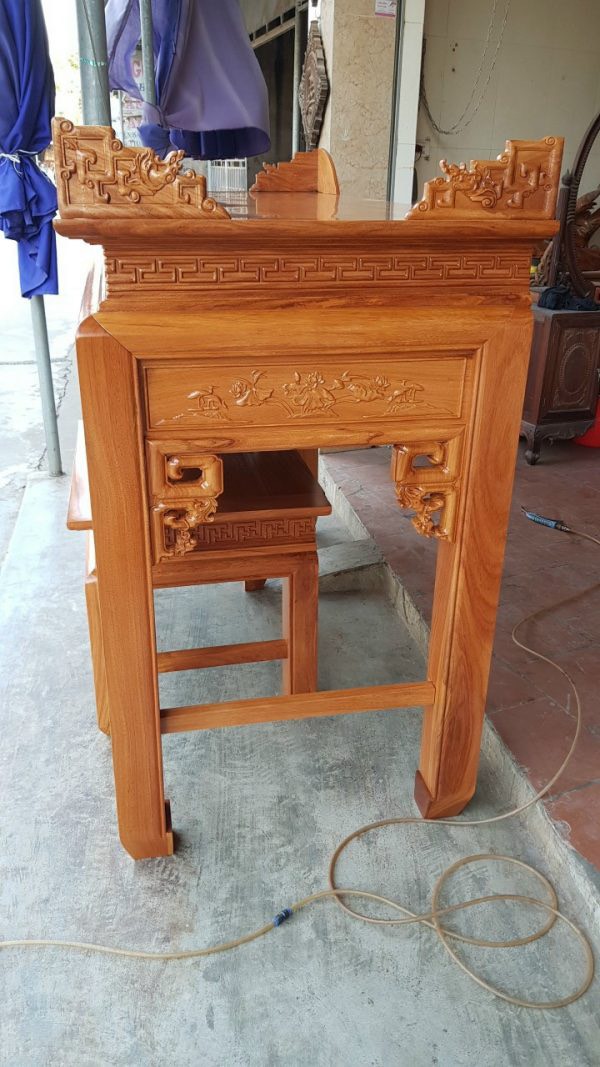 Bàn thờ án gian gỗ gõ đỏ truyện cài sen đẹp.