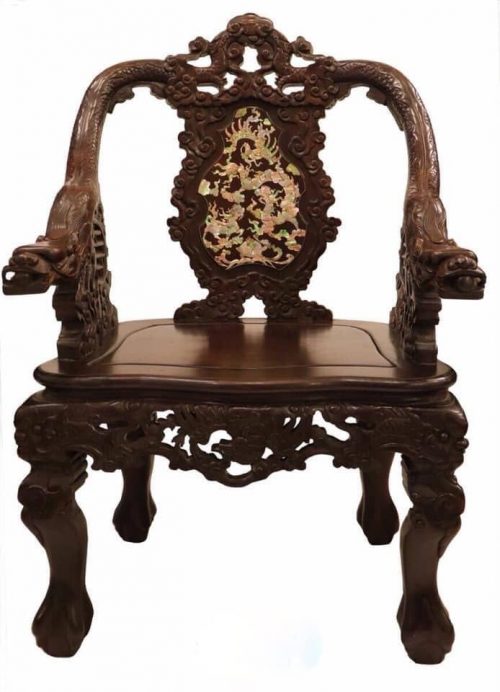 Bộ trường rồng là sự kết hợp của văn hóa xưa và nay với kiểu dáng ghế nhỏ nhắn nhưng không mảnh mai. Các hoa văn cầu kì được thực hiện một cách rất tỉ mỷ chau chuất cẩn thận. Tựa ghế được điểm sáng bởi các họa tiết cẩn ốc rất đẹp. Tất cả bộ sản phẩm đều được làm vecli giả cổ sáng óng đẹp tự nhiên.