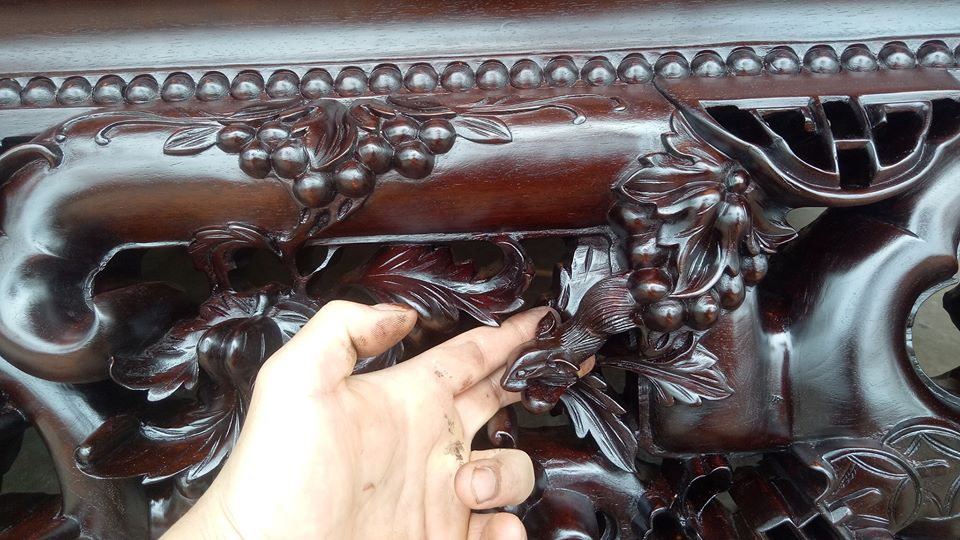 Sập ngũ phúc nho cổ liền gỗ gụ 1m8 x 2m2.