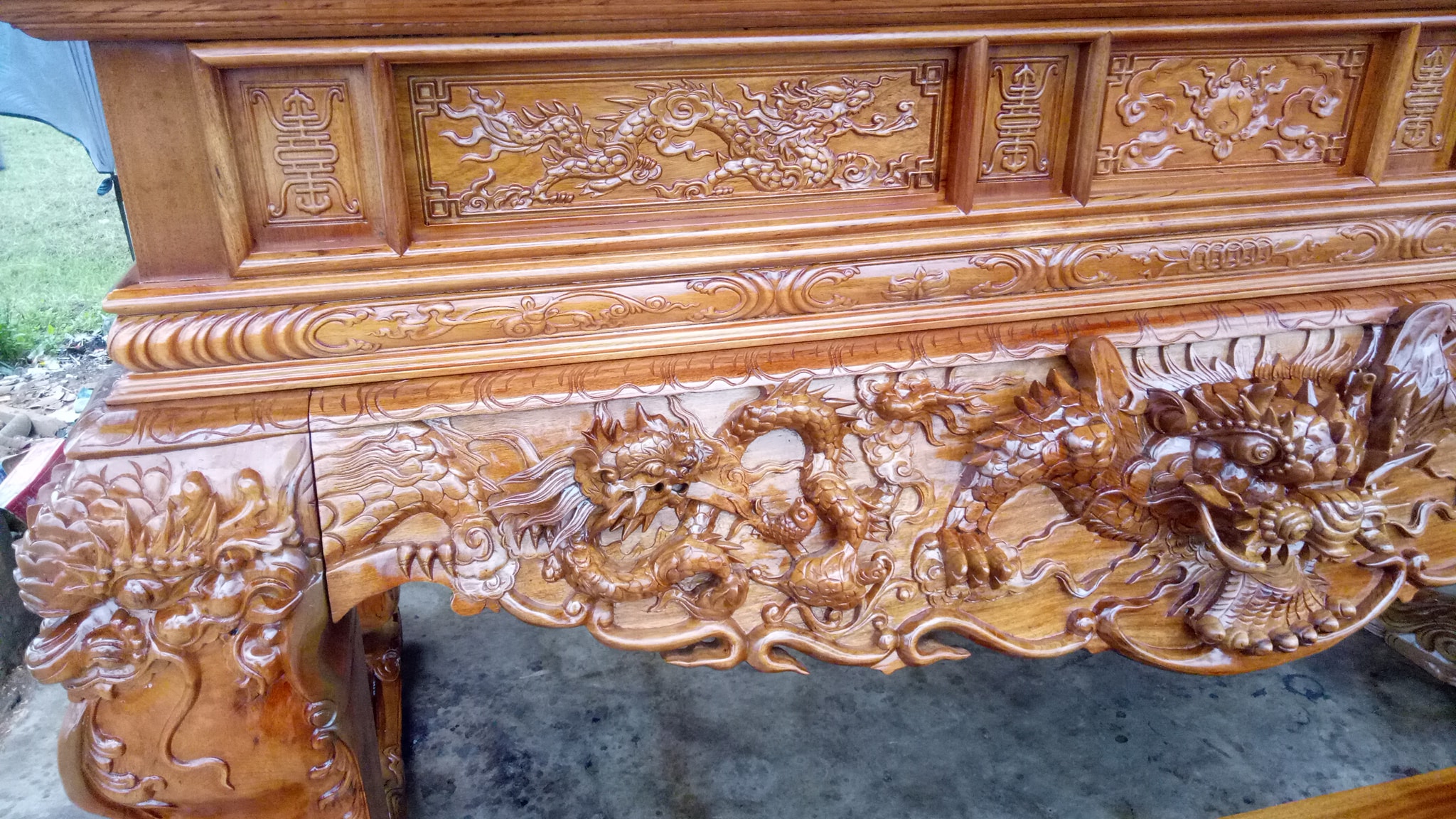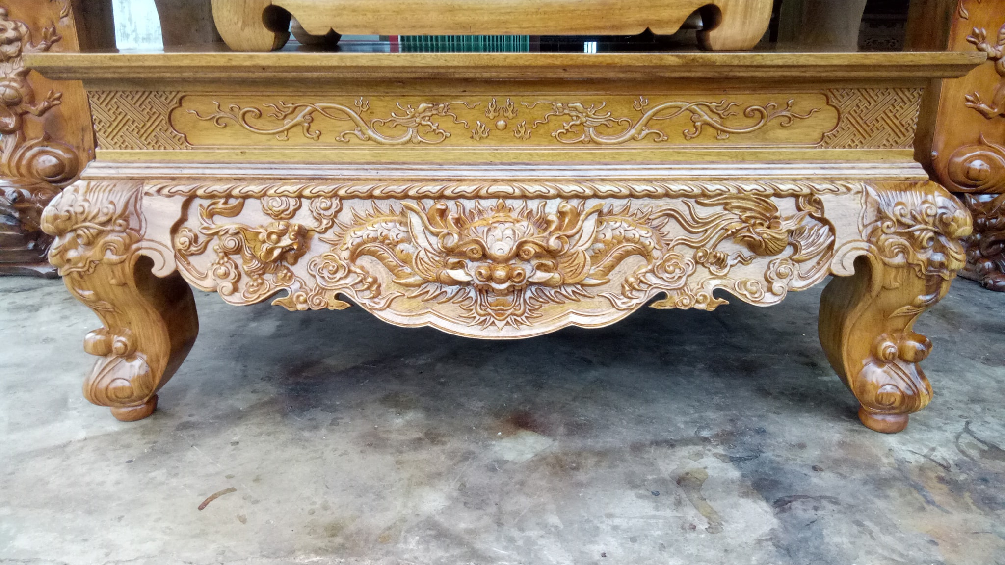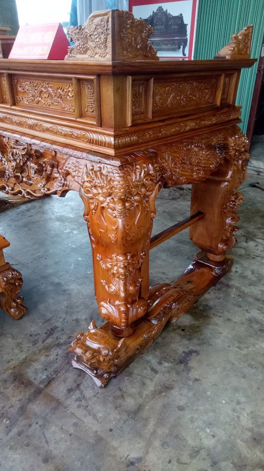 Chi tiết bàn cơm gỗ gụ của bộ sập thờ tứ linh