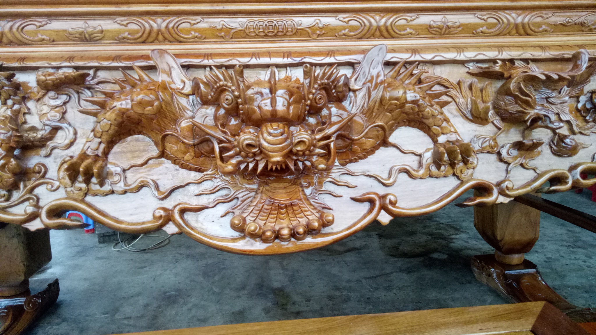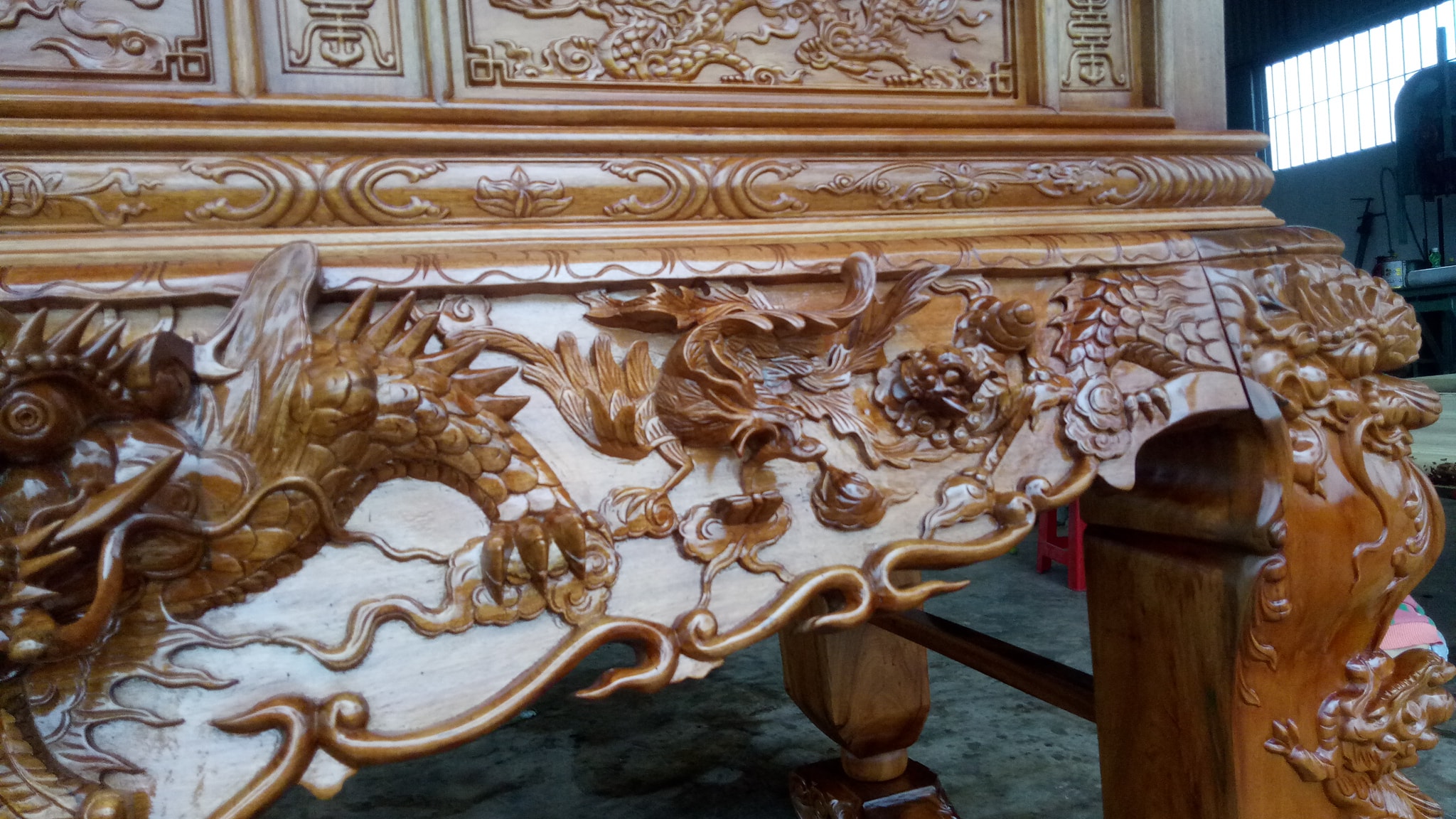 Chiêm ngưỡng đầy đủ vẻ đẹp bộ sập thờ tứ linh gỗ gụ chân 24