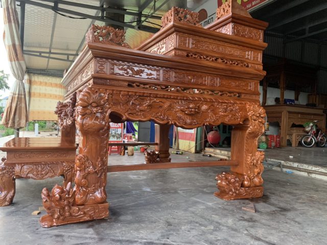 Sập thờ tứ linh tam cấp gỗ gõ đỏ đẹp siêu víp.