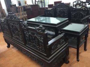 Trường kỷ Huế chạm tích cổ đồ cây dừa chóp cao