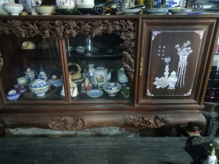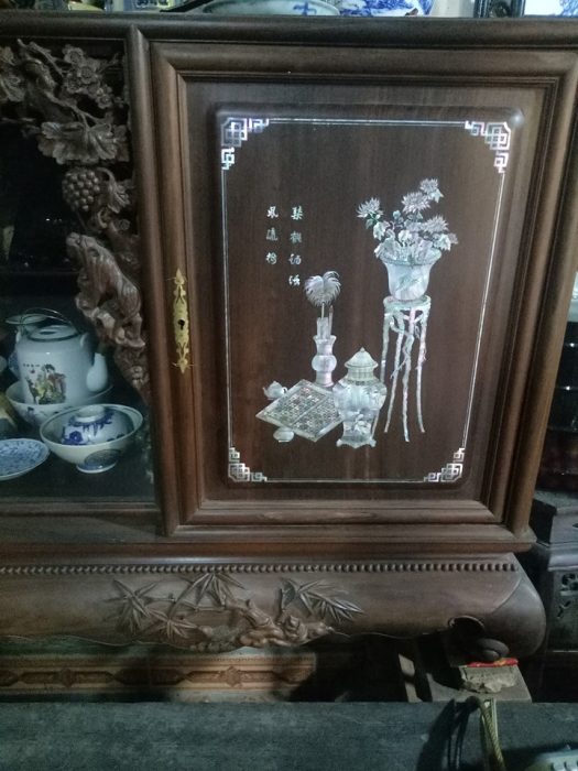 Cánh đông bích và bệ ba bông của tủ chè cổ